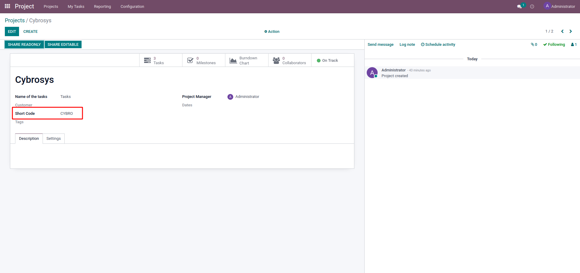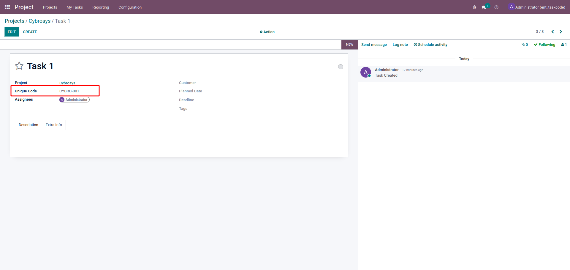 This module helps you to track each tasks with the unique code which is generated automatically.For projects a code can be set which will be used to generate the unique serial code for that project's tasks.Hence, this makes the tracking of tracks by project easy and convenient for the users.