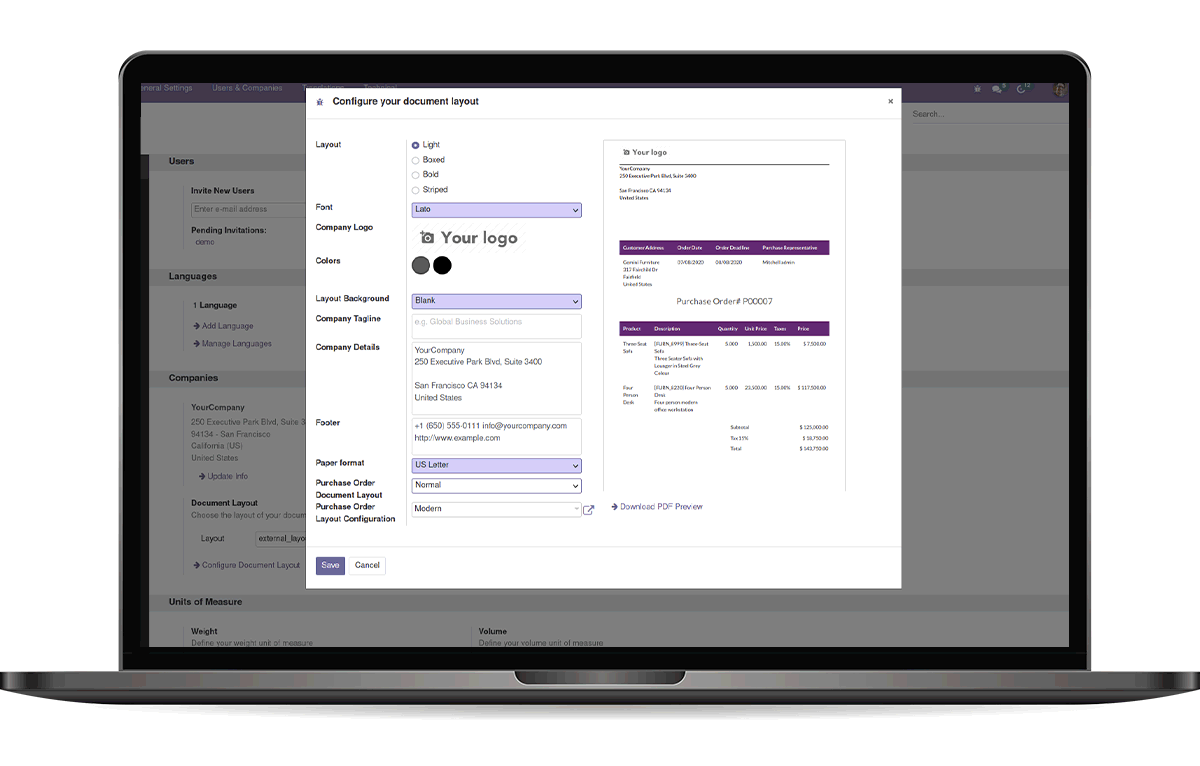 From Document layout configuration in settings, user can select and configure the invoice document layout