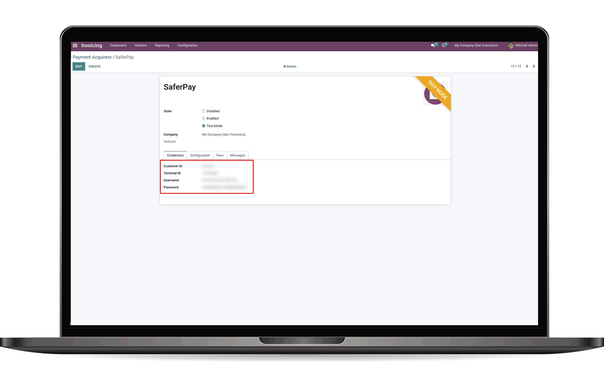 You can register the safer pay using this link : https://test.saferpay.com/BO/Welcome