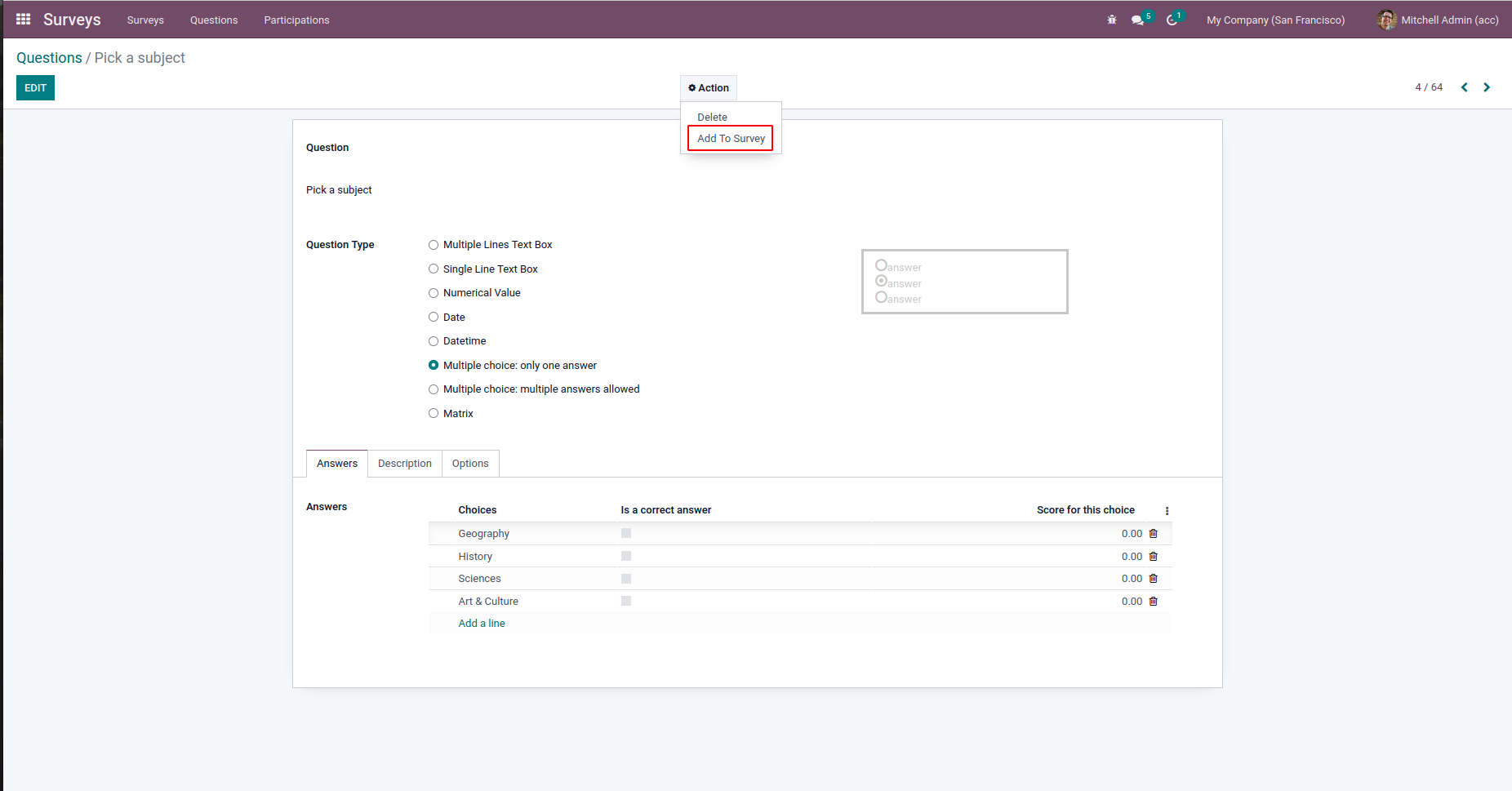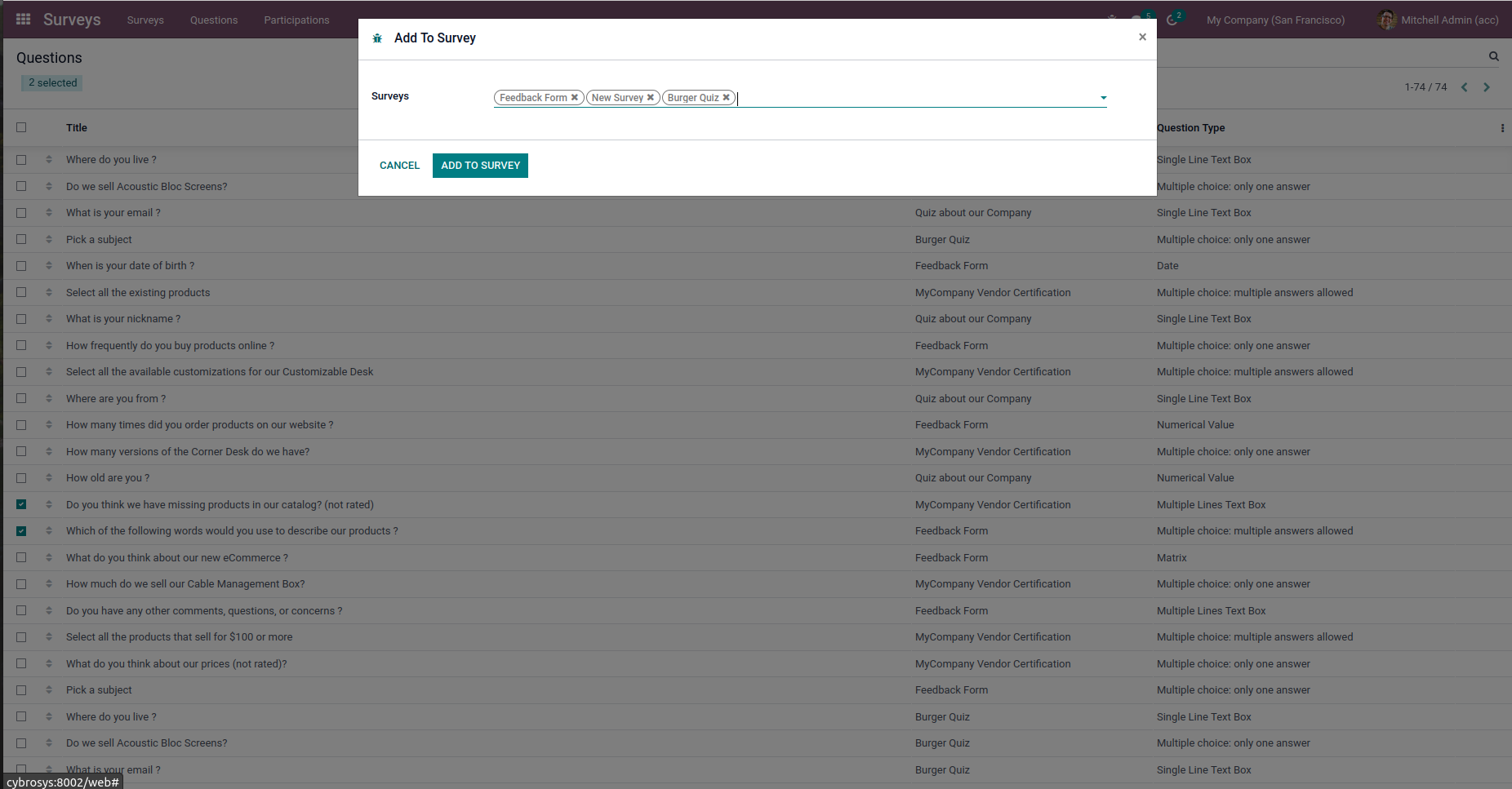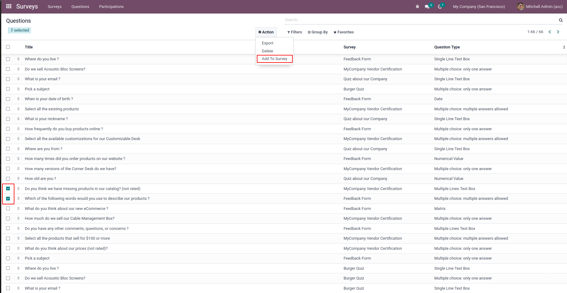 Select the questions for duplication. Then click on Actions -> Add To Survey.