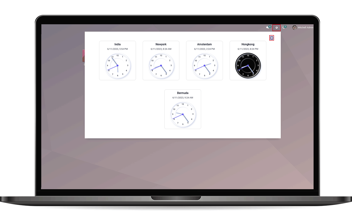 The globe icon in systray opens the interface with all the clocks configured in the settings. The settings button opens the configuration page.