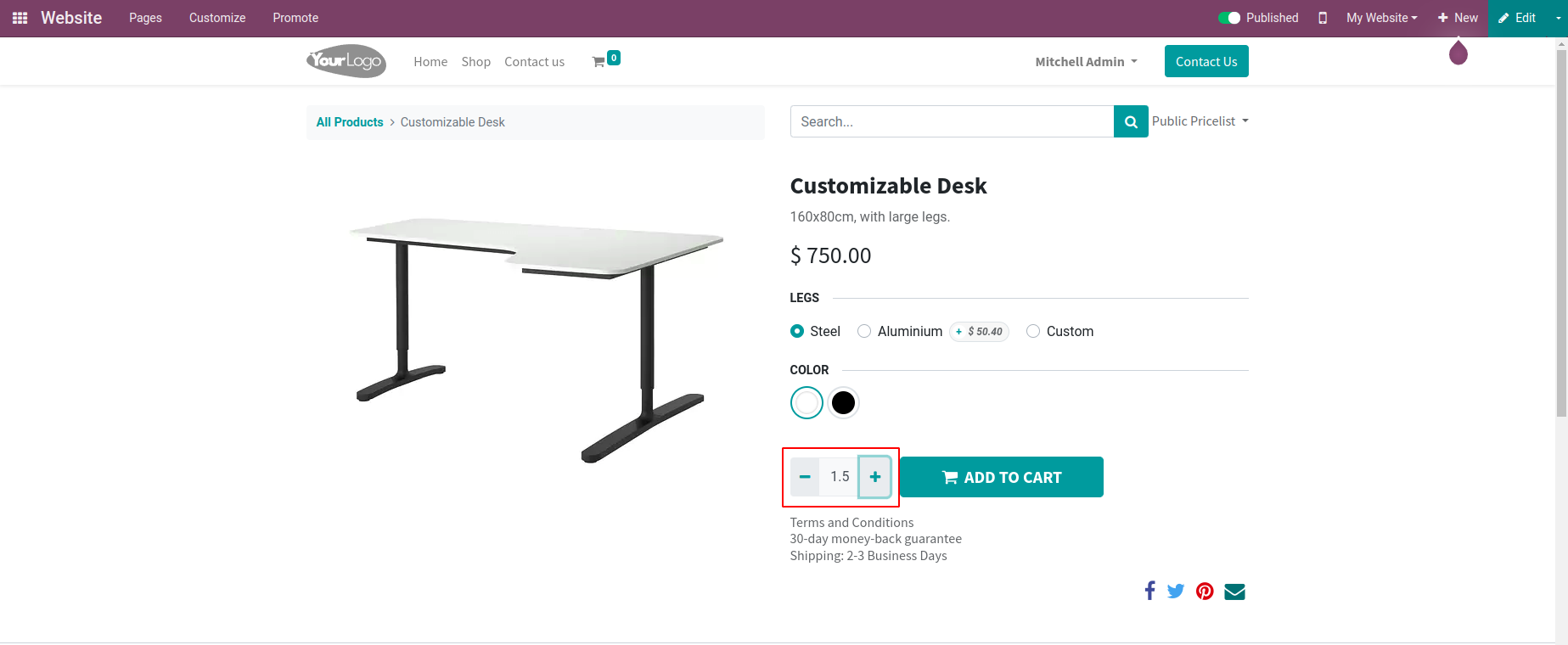 Select product quantities in decimal values from Cart Page.