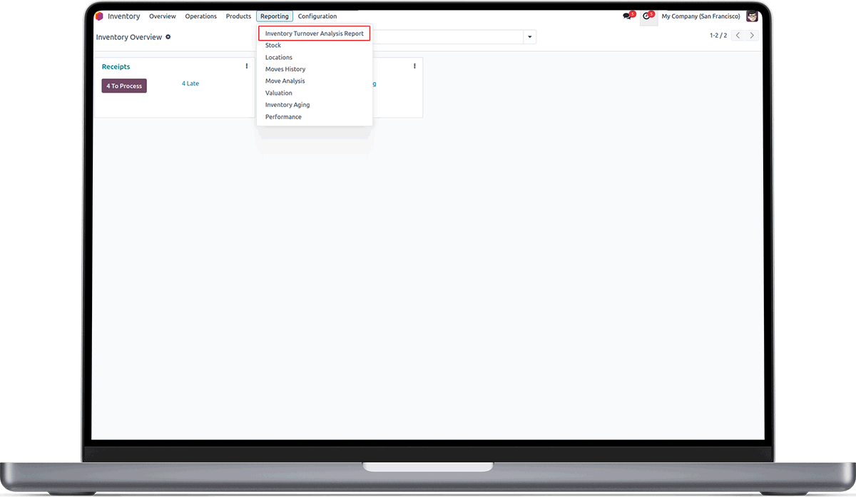 This will help you to generate inventory turnover analysis report in pdf, xlsx, tree view and graph view.