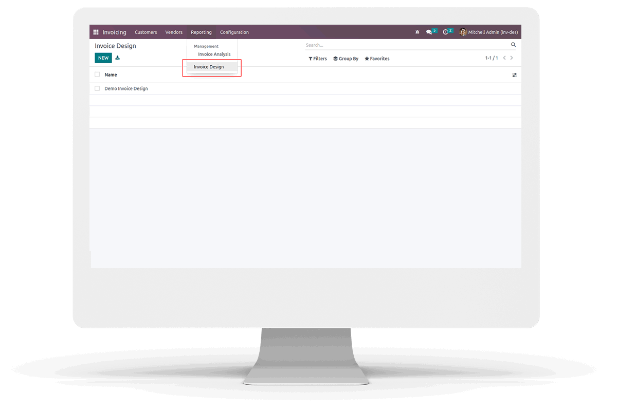 Go to Invoicing -> Reporting -> Invoice Design. Here, you can design template for your custom invoice.