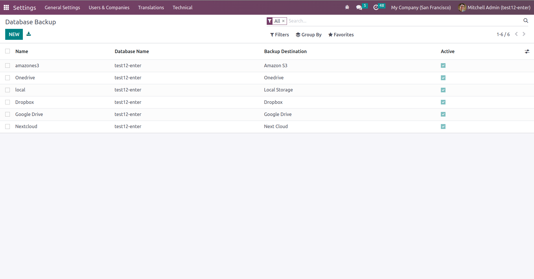 Go to Settings->> Technical->> Backup Configuration to set up Database backups
