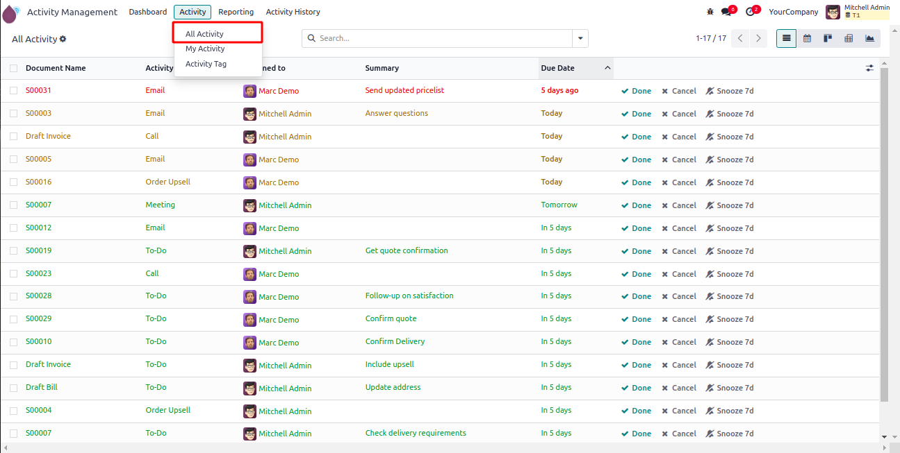 All activity list.While clicking on the dashboard all activity card it will redirect to all activity window.