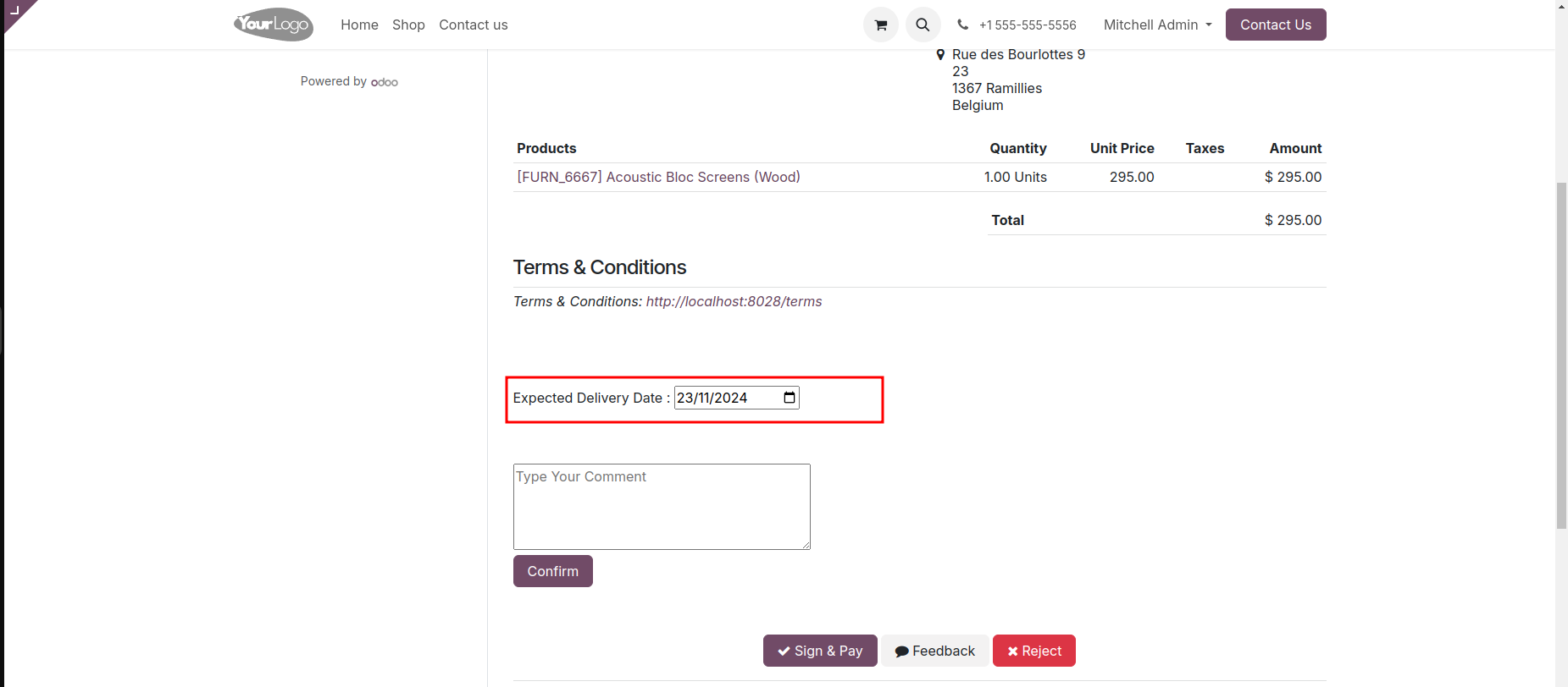 Customer can confirm the quotation in the portal.Customer can leave comments in quotation order about delivery.