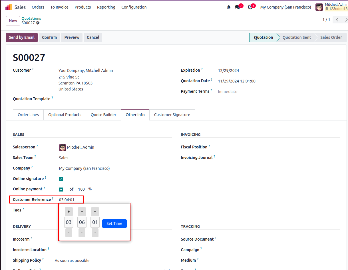 Add Time Picker Widget That Can Be Used With Character Type Fields In Odoo.