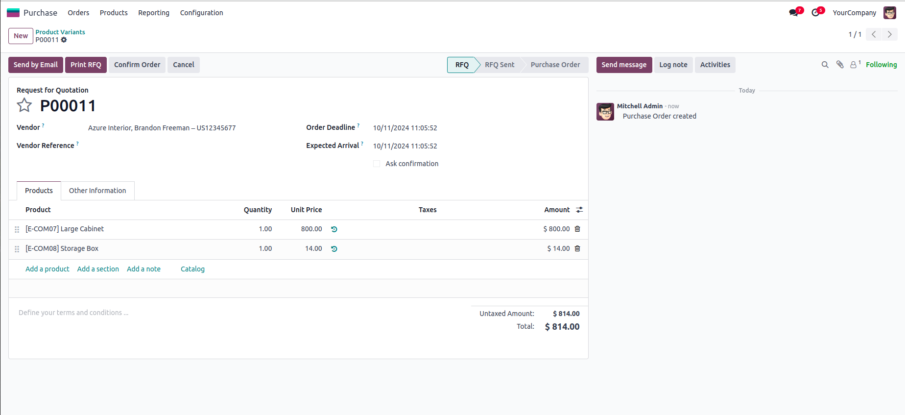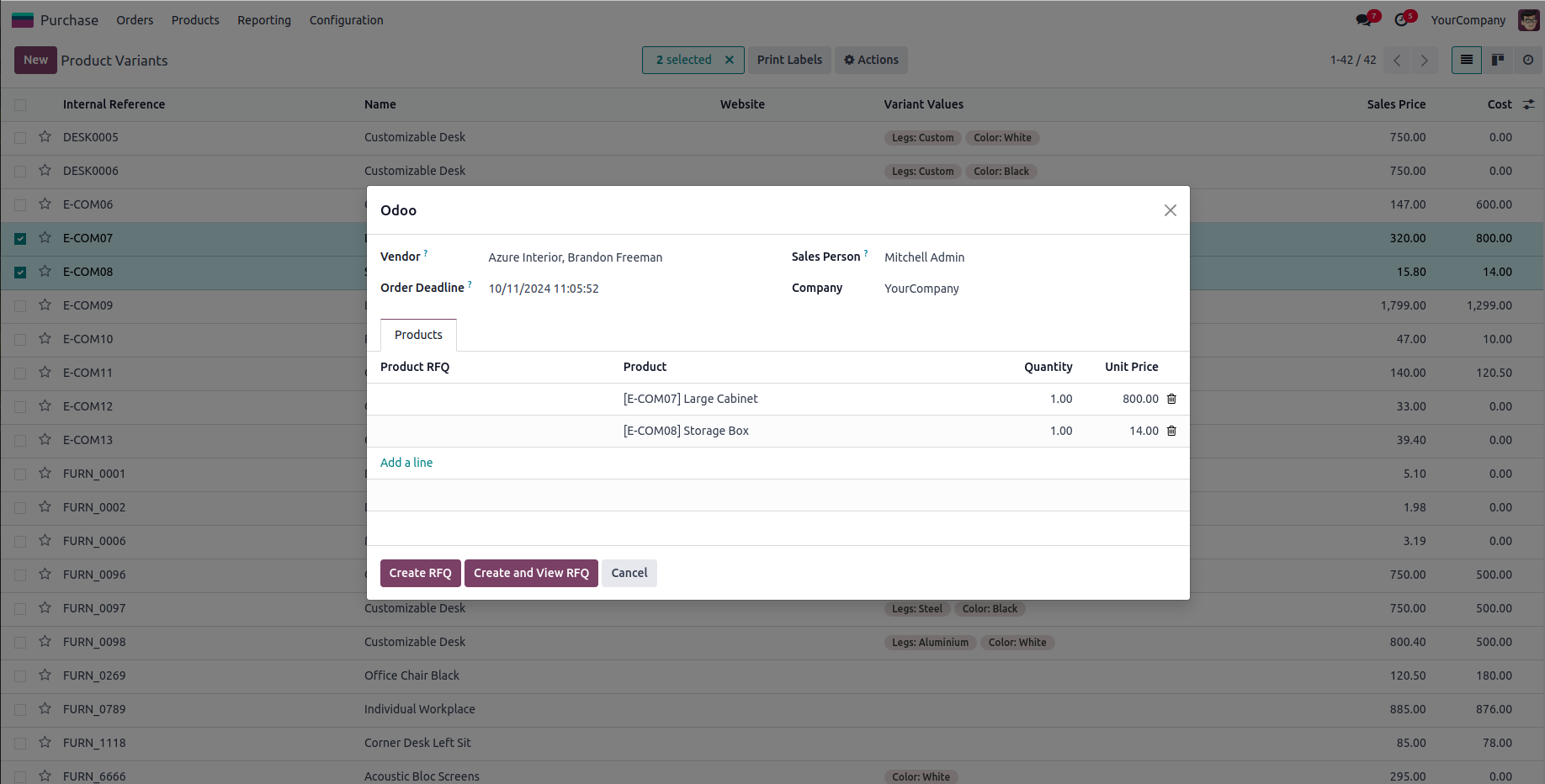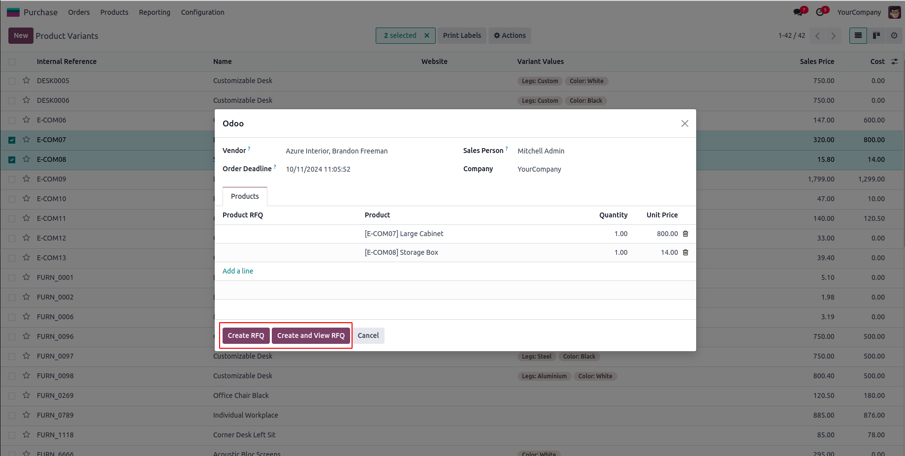 Created RFQ with Selected Products.