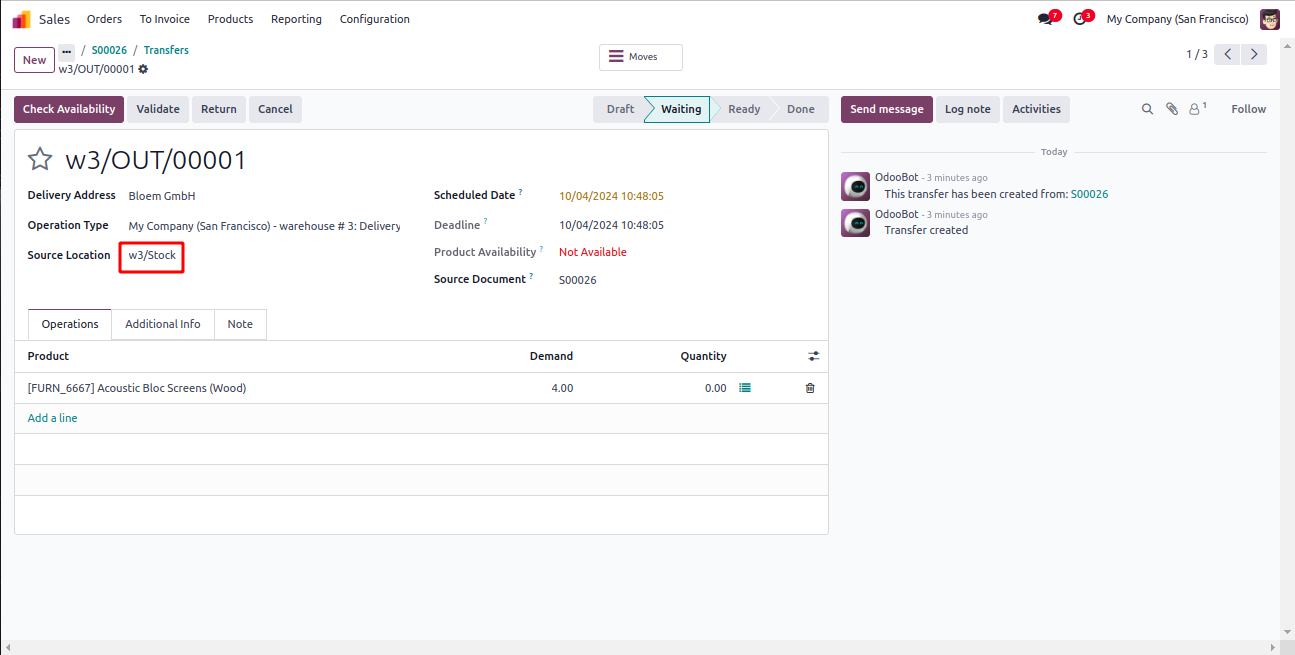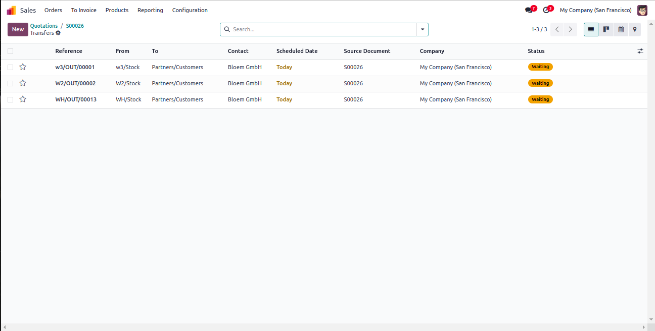 If you selected 3 different warehouses for products, 3 delivery will be created.