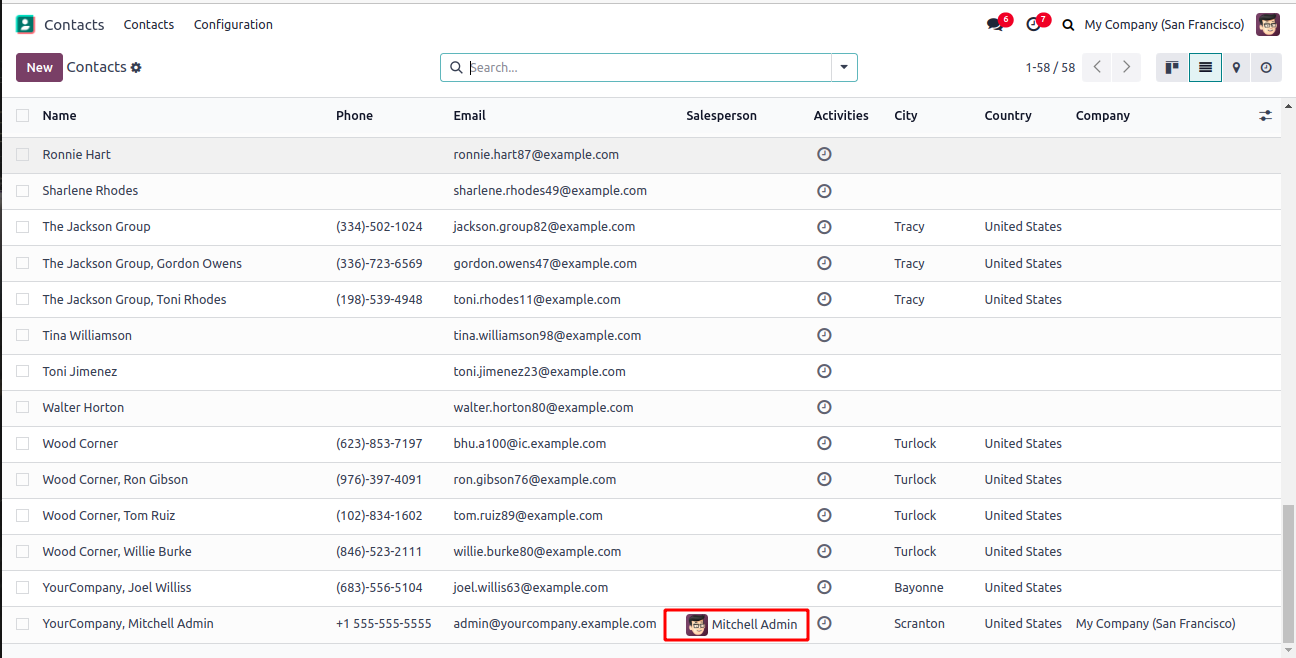 The user can access contacts where they are the salesperson or where the salesperson is one of their team members.