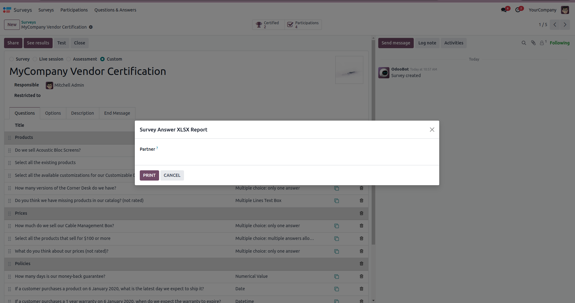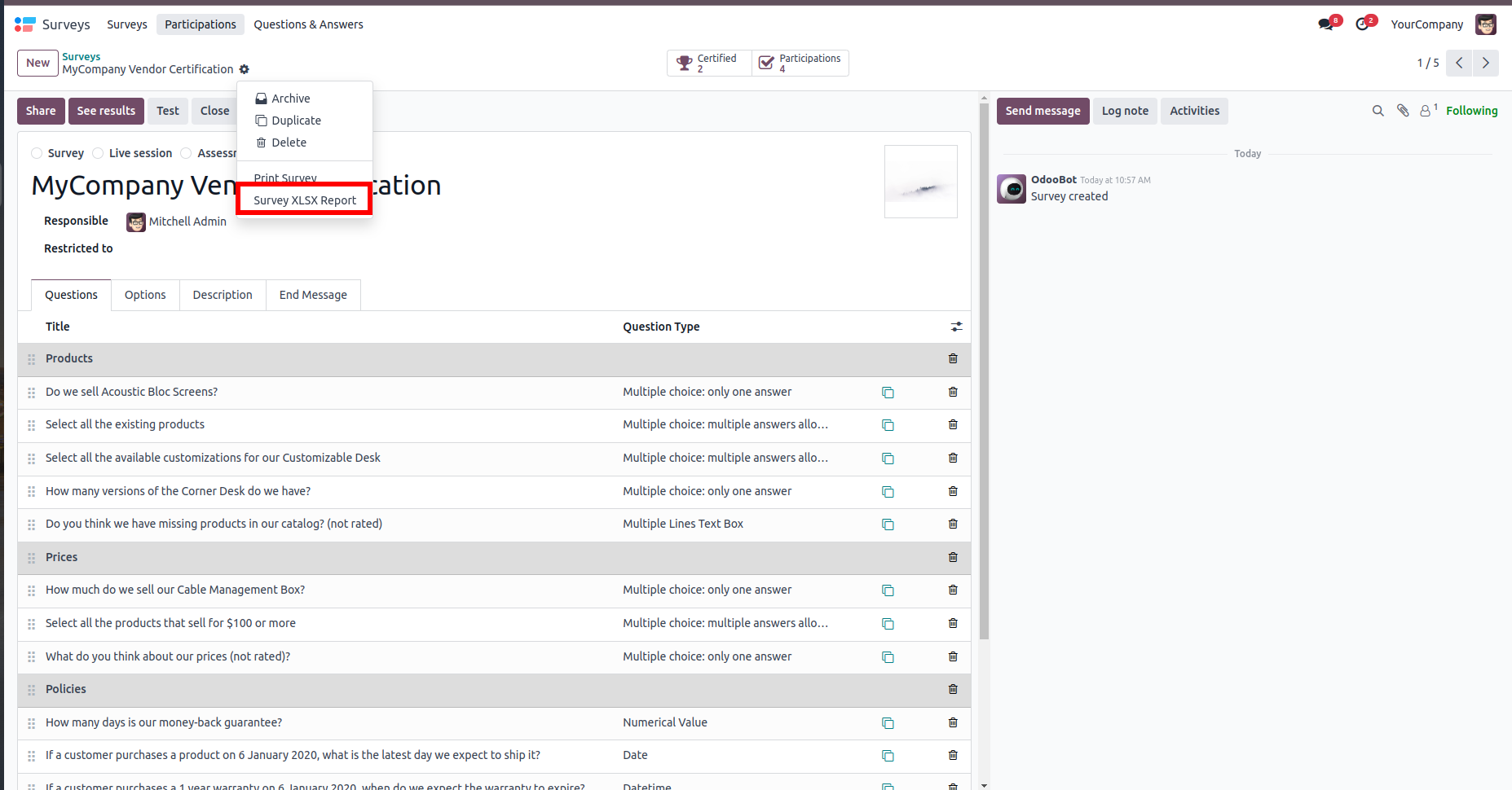 This Module helps to Export Survey Answers in XLSX Format. You can easily get the Questions and Answers of the Corresponding User.