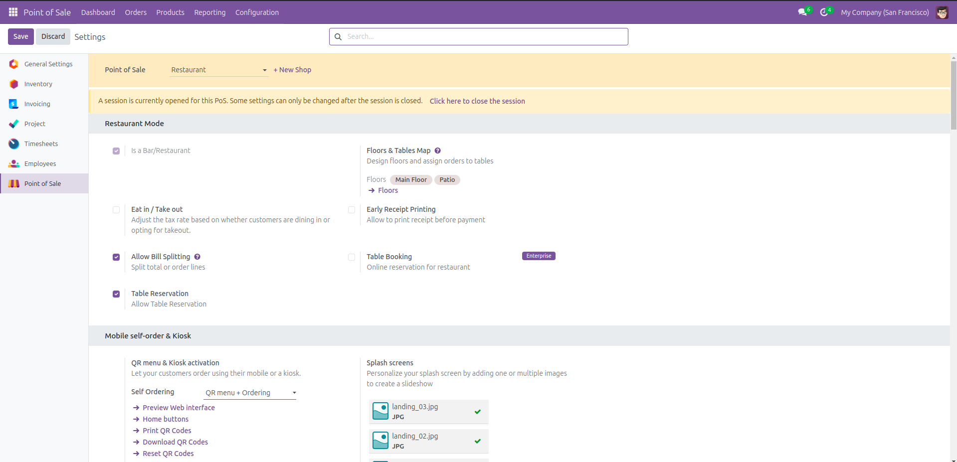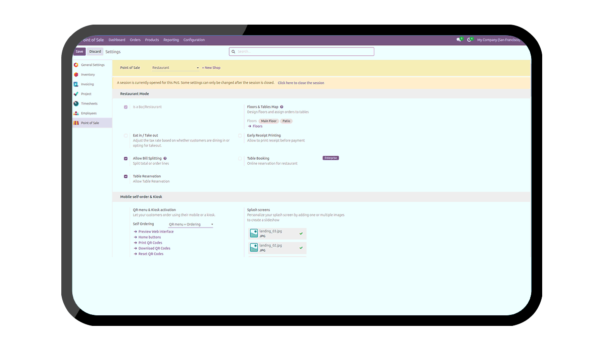 The "Reserve" and "Unreserved" menus facilitate the reservation of POS tables.