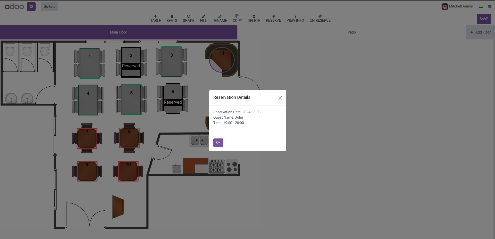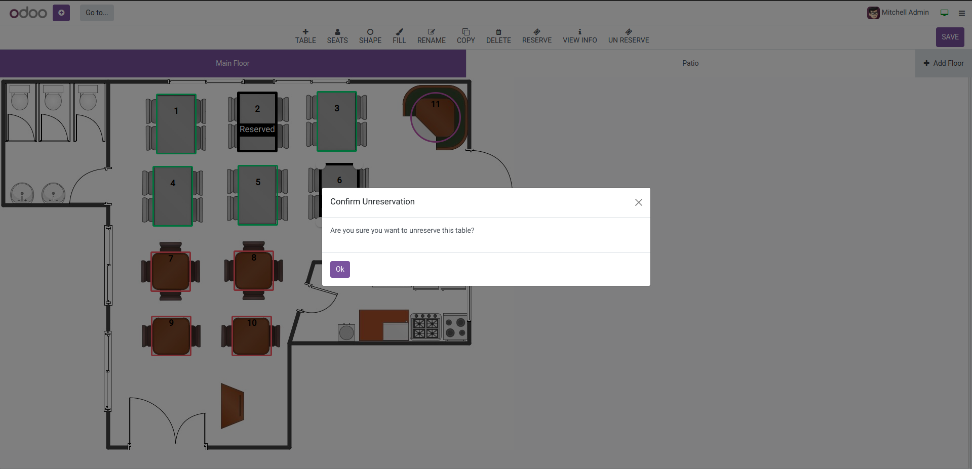 After clicking the "Unreserve" button, the table reservation will be canceled.