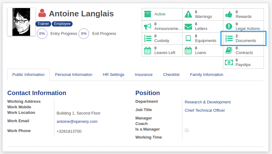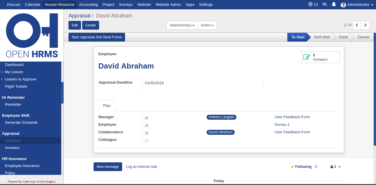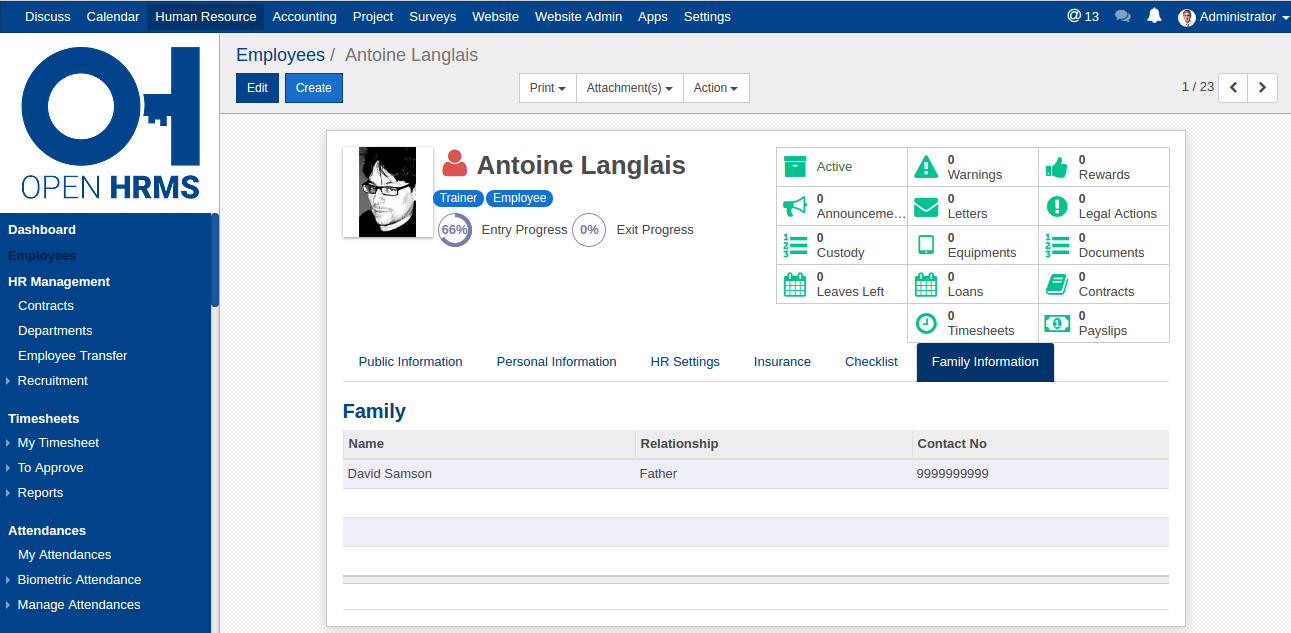 Main Module of Open HRMS. A simple, easy to use and intuitive tool helping employees and management to perform in full potential, boosting the productivity and overall employee satisfaction. Open HRMS offers a 360 degree overview of employee and their skills.