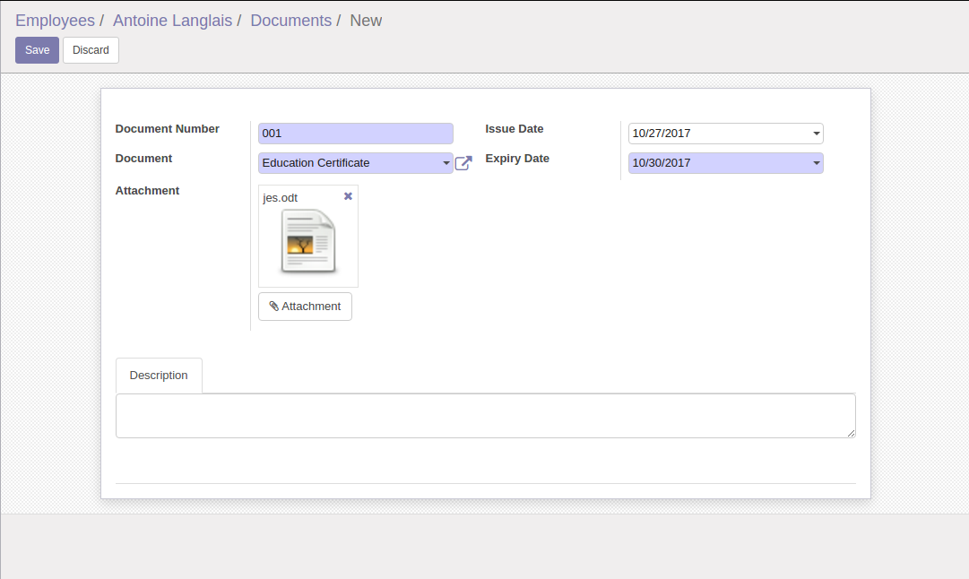 Each and every detail associated with an employee is useful for any organization for better Human resource management. So the employee documents with such necessary information must be saved and used accordingly. 'Employee Documents' is a useful tool that can help you to store and manage the employee related documents like certificates, appraisal reports, passport, license etc. The application also allows you to set an alert message on reaching the expiration/any other related dates of a document (like an expiration of passport)