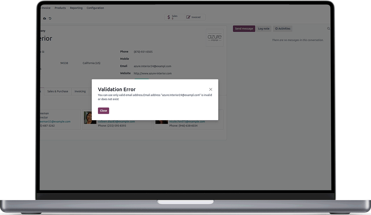 Email address of partners in odoo will remain valid and maintain reliability in address details.