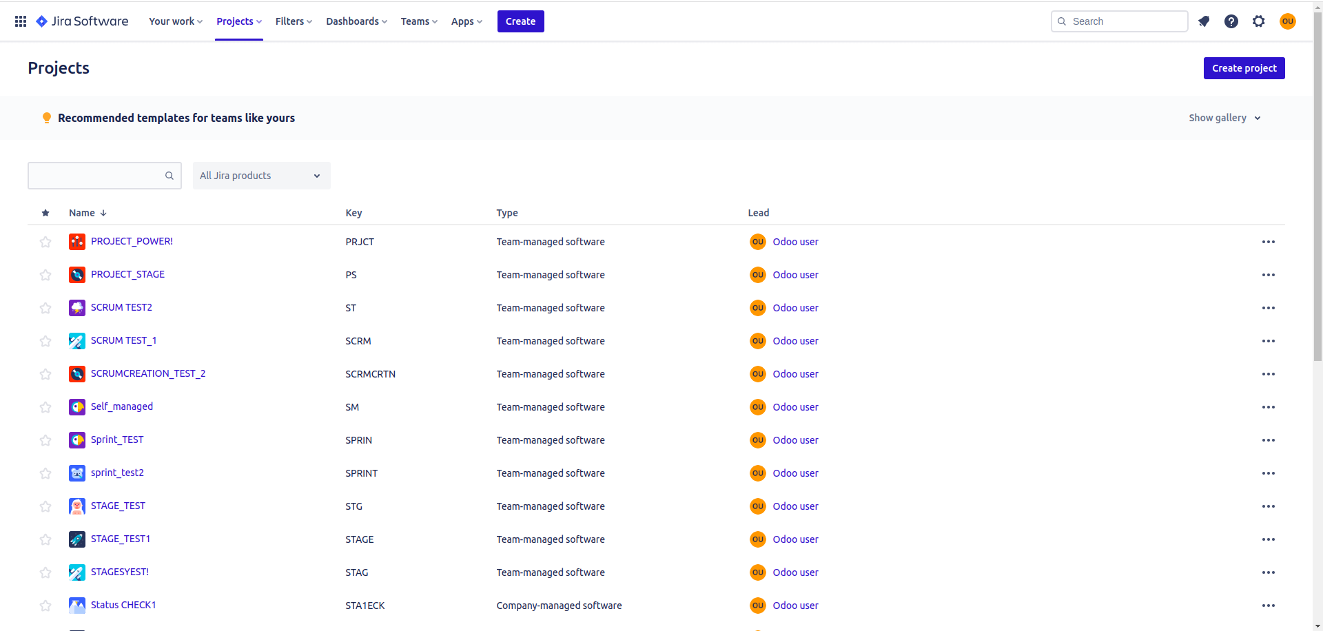Projects, Tasks, Attachment, Status, Users are created automatically in Jira when they are created in Odoo, and these are also created automatically in Odoo when they are created in Jira.