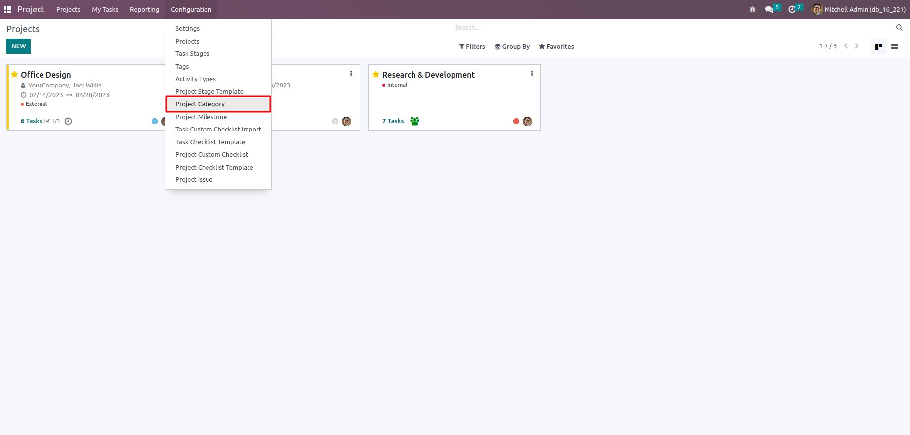 Open a Project under settings tab we can add Project category