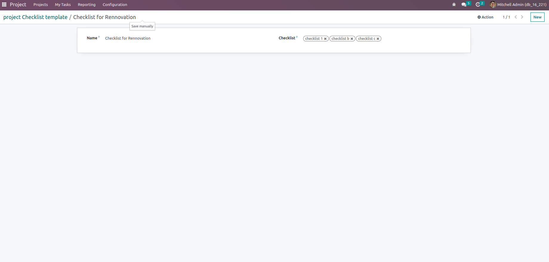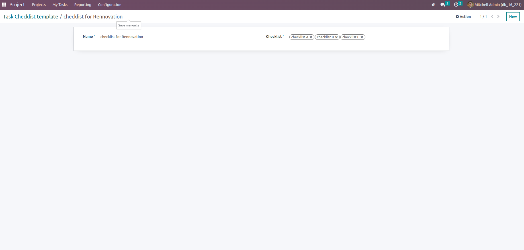 Task Checklist Template Form View