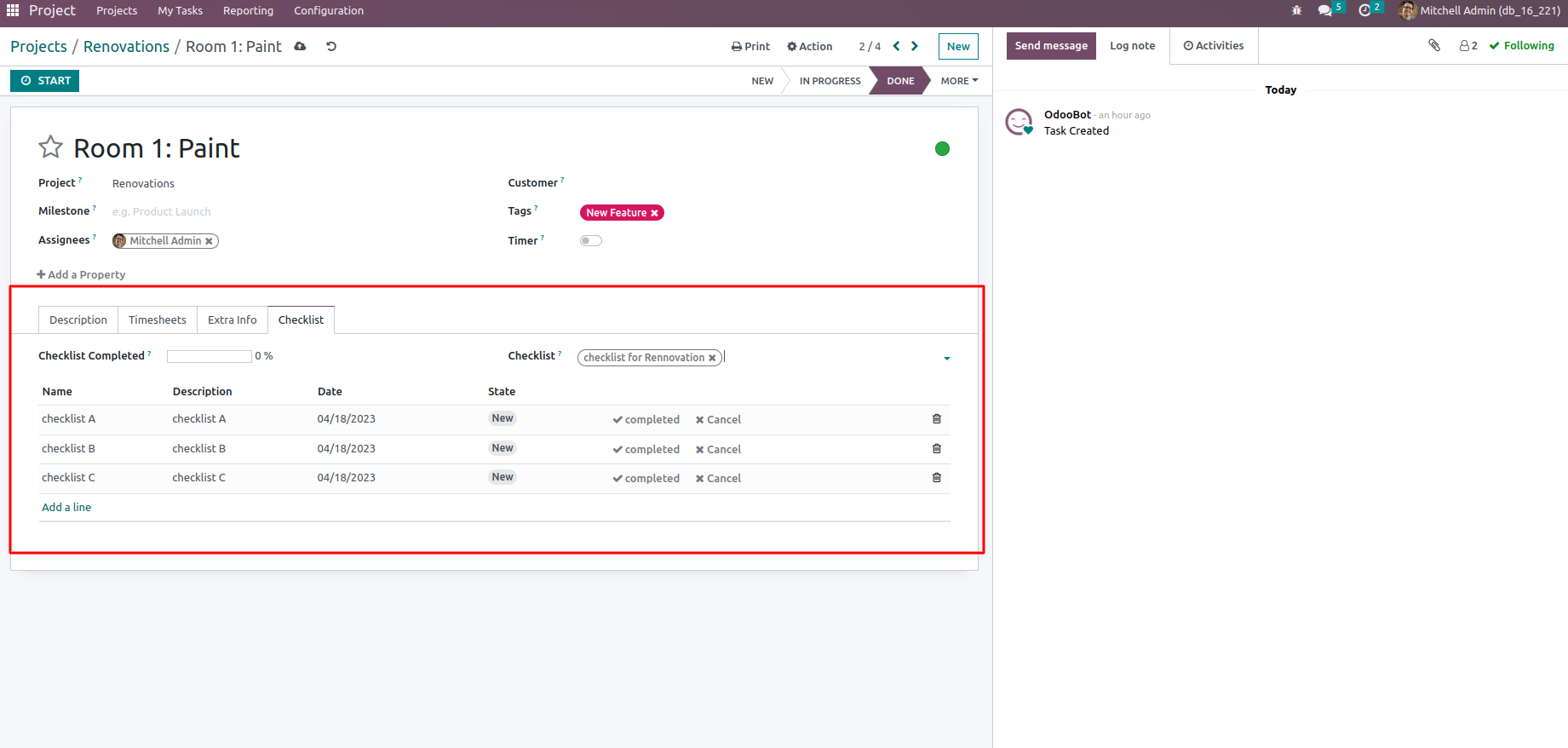 Option to Manage Project and Task Checklist