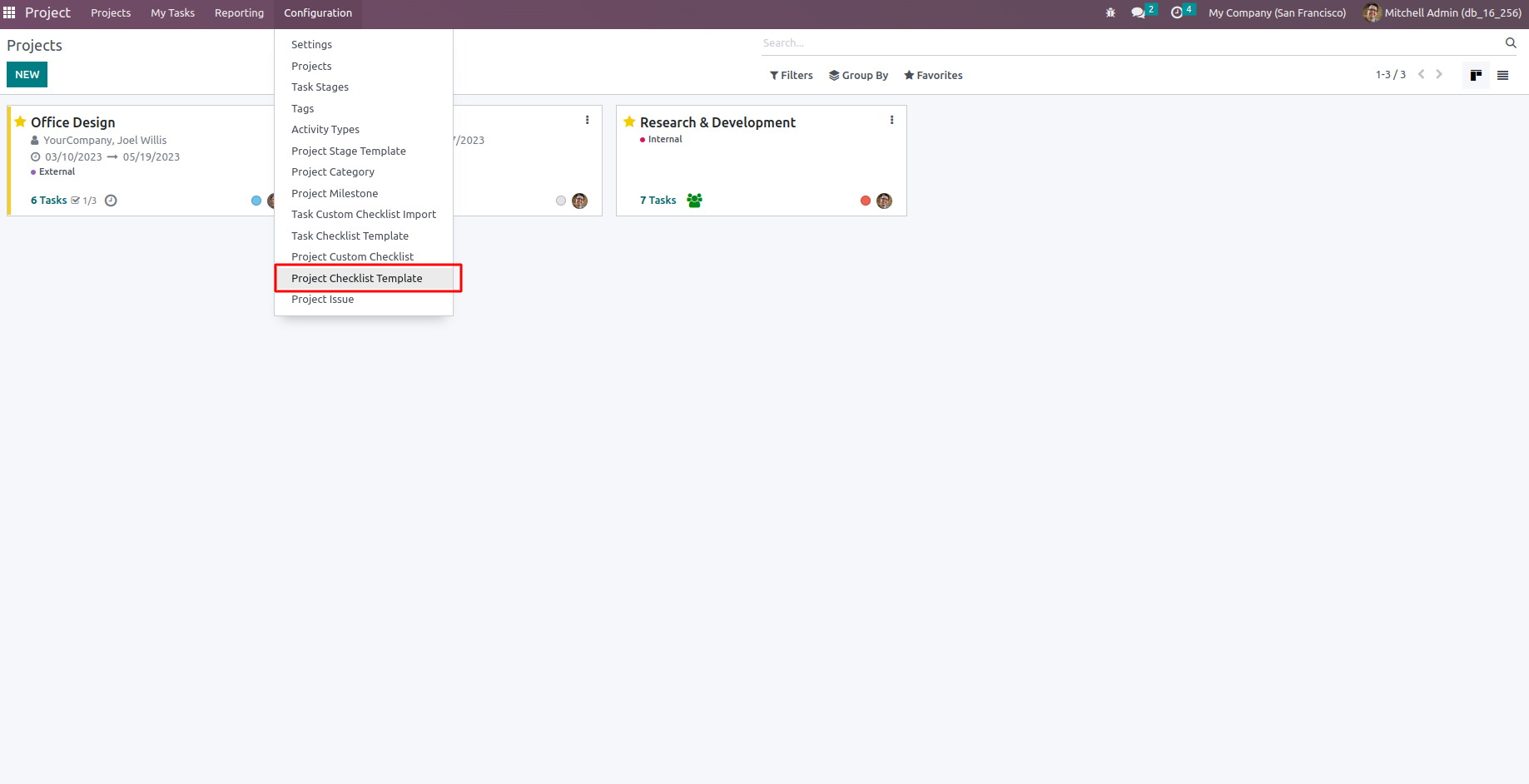 Go to Project -> Configuration -> we can see Task Custom Checklist Import menu