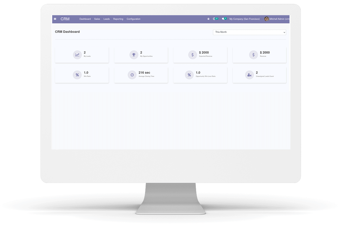 Motivating your sales representatives is one of the key factors for successful sales. The commission-based plan helps to motivate your Sales Teams and Salespersons to achieve the goals and earnings. A Commission Plan module is a monetary incentive for motivating Salespeople to meet their Sales quota and the CRM Kit has embraced the functionality. In the CRM Kit, we have 2 types of Commission Plans which are being defined product-wise and revenue-wise further under revenue-wise we have two types: the straight commission and graduated commission. The CRM Kit also includes the CRM Dashboard which helps you to see the Overview of the CRM module. Here, you can view all details related to CRM modules such as Leads, Opportunities, Expected, and Total Revenue, also we can see the different reports on the various CRM activities.