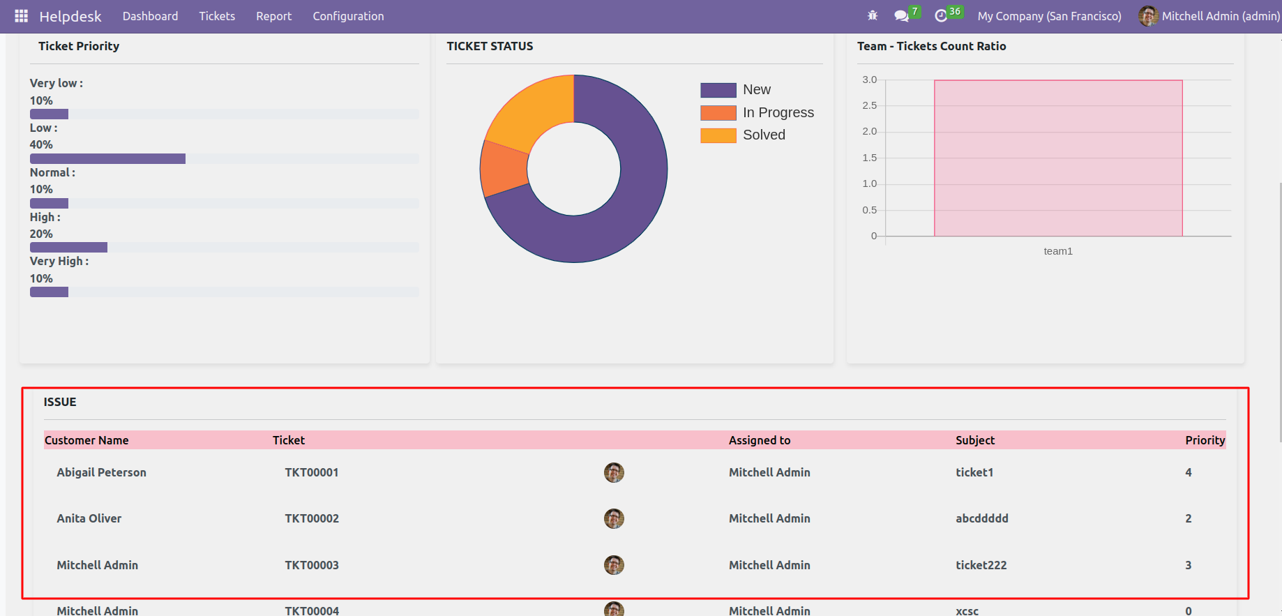 Detailed Dashboard View for Helpdesk Management Module