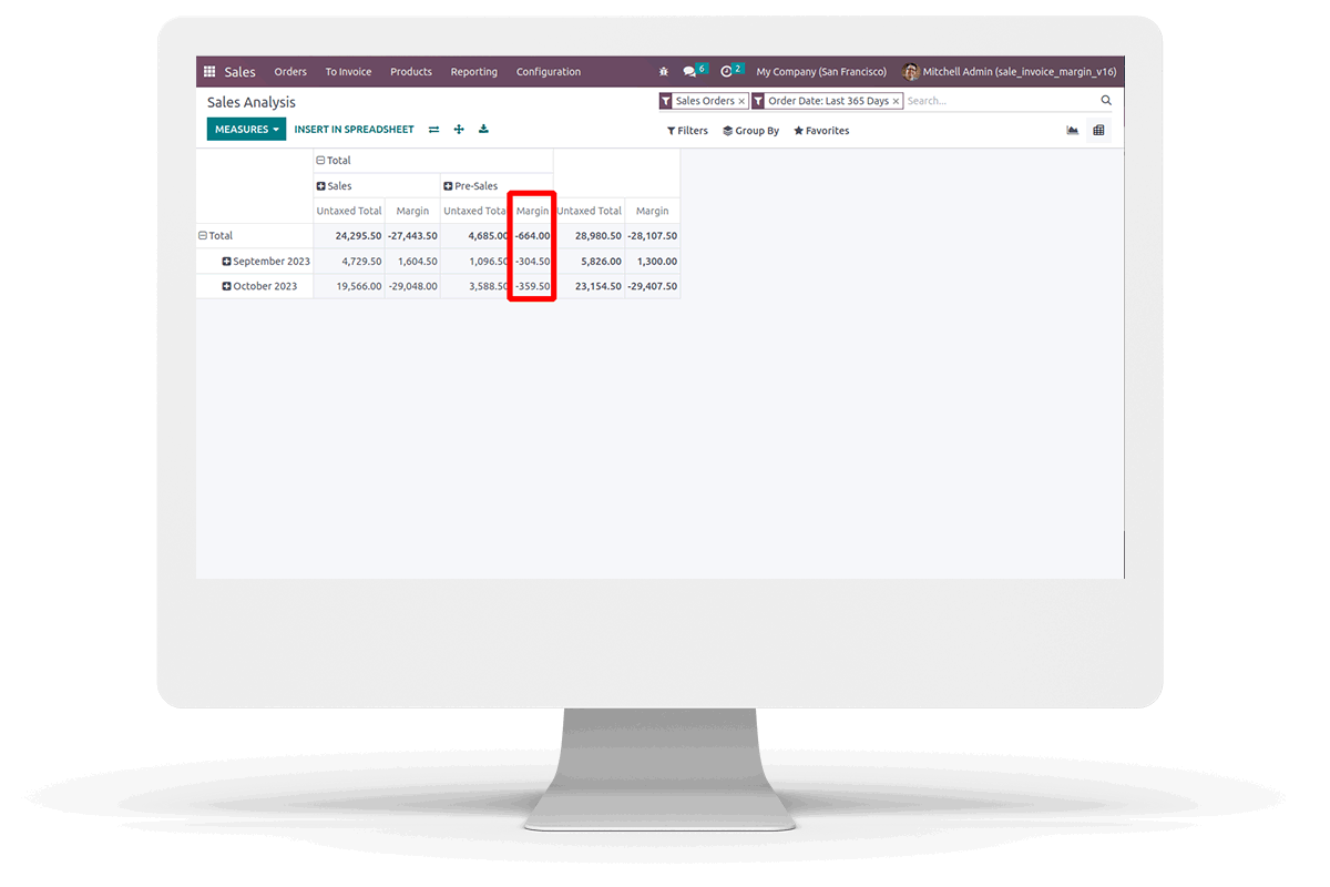 Sales Invoice Margin Analysis in Odoo.