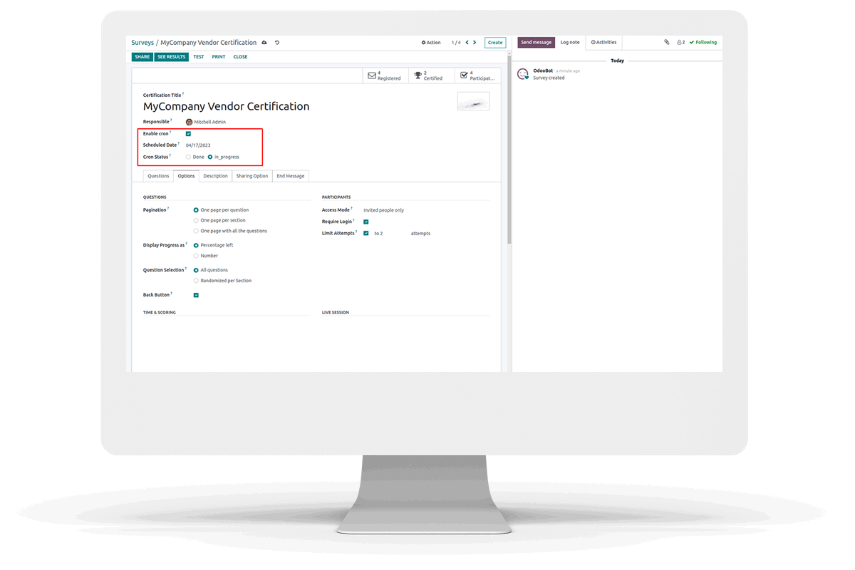 This Module Facilitates Survey Scheduling And Automatically Send To The Participants.
