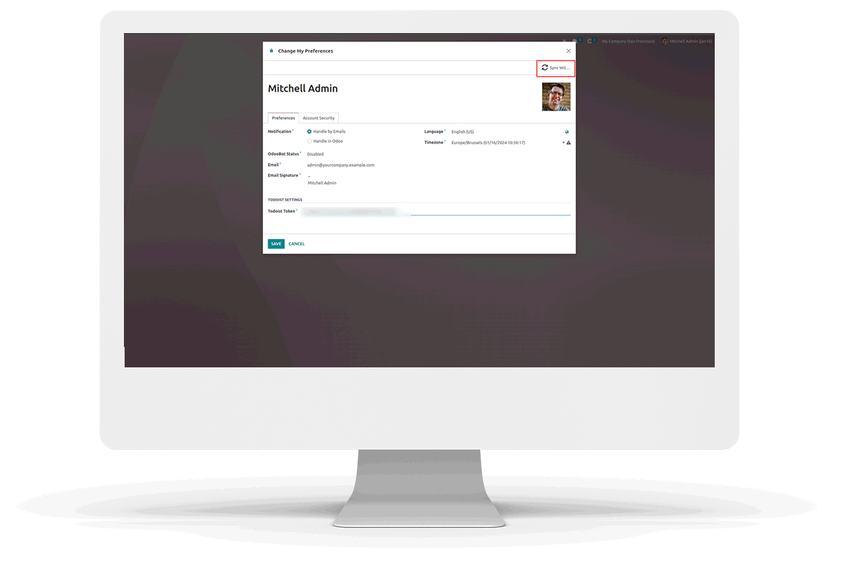 Take Preference form and paste the Token from Todoist App and use the sync button to take the projects and tasks from Todoist App to Odoo Project Module.