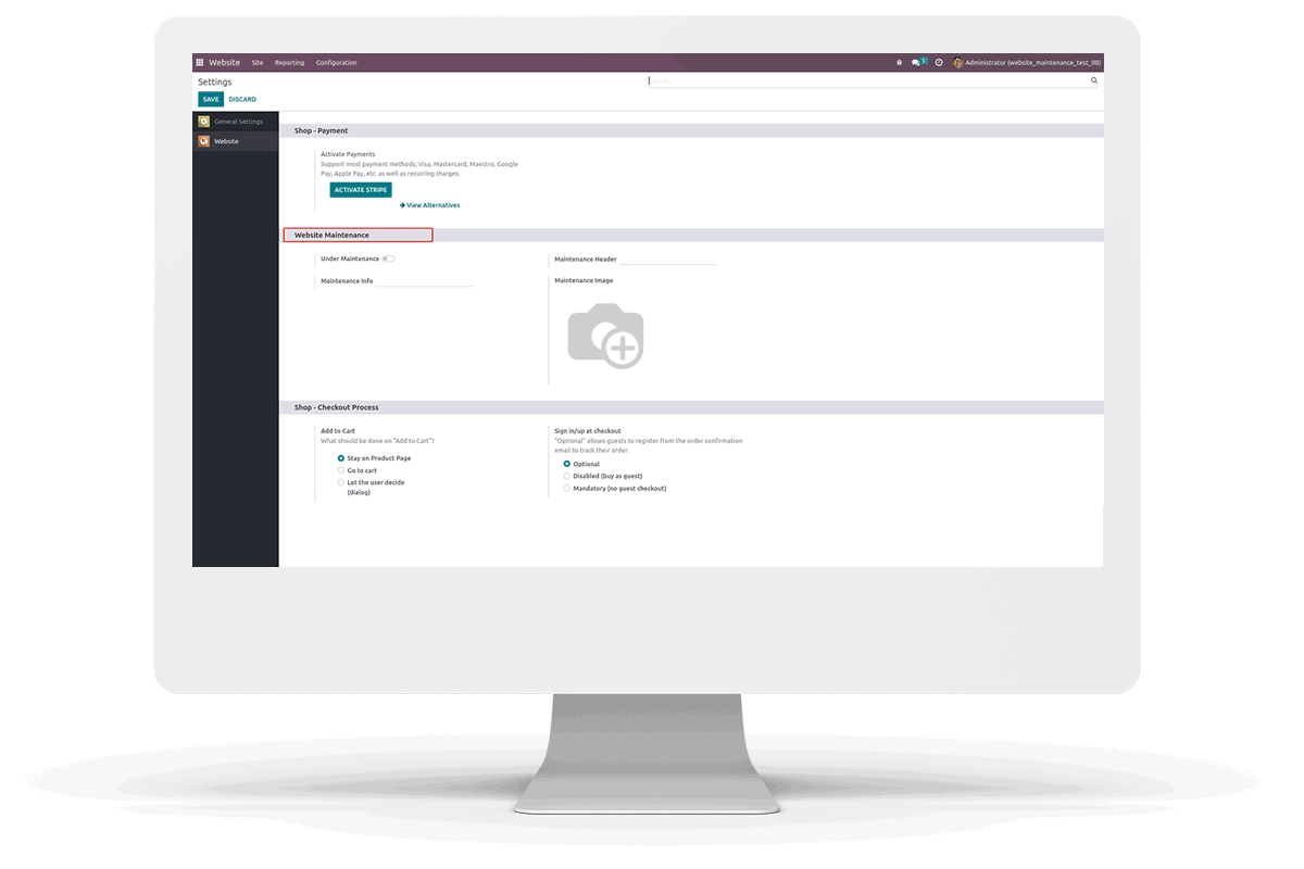 Under website configuration settings user can configure Website Maintenance.