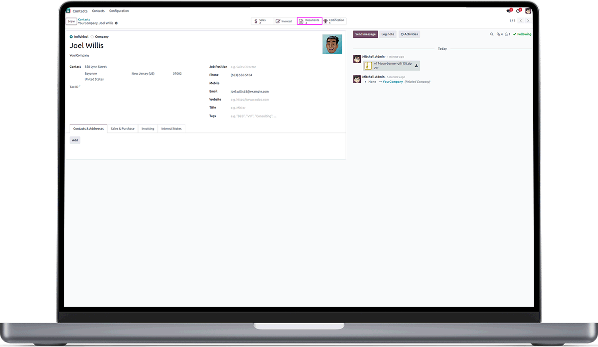 We Can See A Smart Button Documents Click On This To See The Contacts Documents.