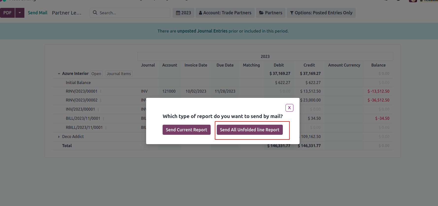 The user can select the type of report, whether it is a current report or an unfolded line report.