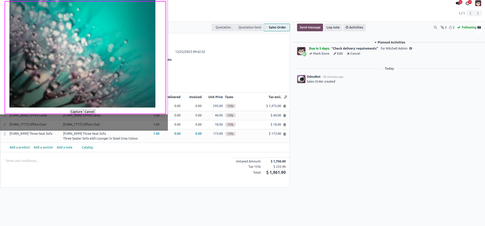 By clicking on the camera button we will have a camera screen.We can add captured images to chatter by clicking capture button.