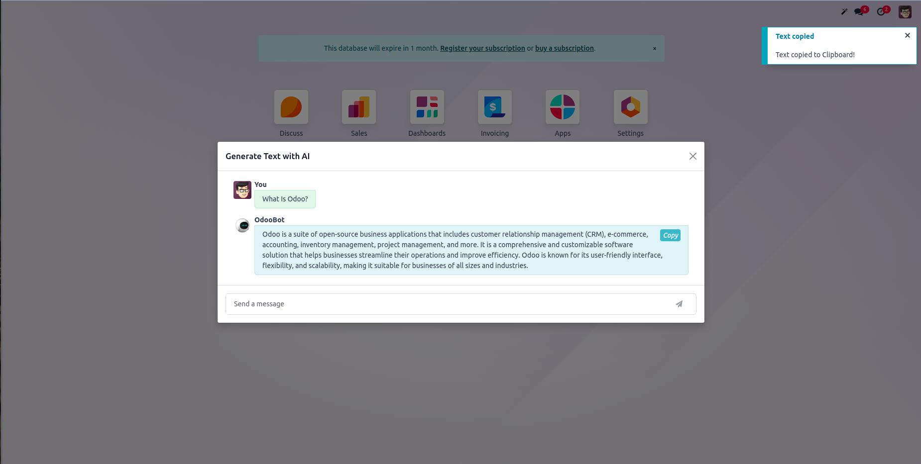 The Response will Consist of AI-Generated Text, and Users will have the Option to Copy this Text Using a Dedicated Copy Button.