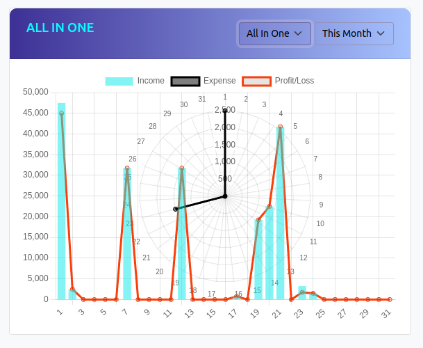 User can see different tiles of Open Invoice , Paid Invoice , Total Income , UnReconciled Items And different details of customer and Vendor Payment List, Bank And Cash Balance , Top Customers/Vendors and different charts of Income/Expense/Profit and Aged Receivables and Payables.