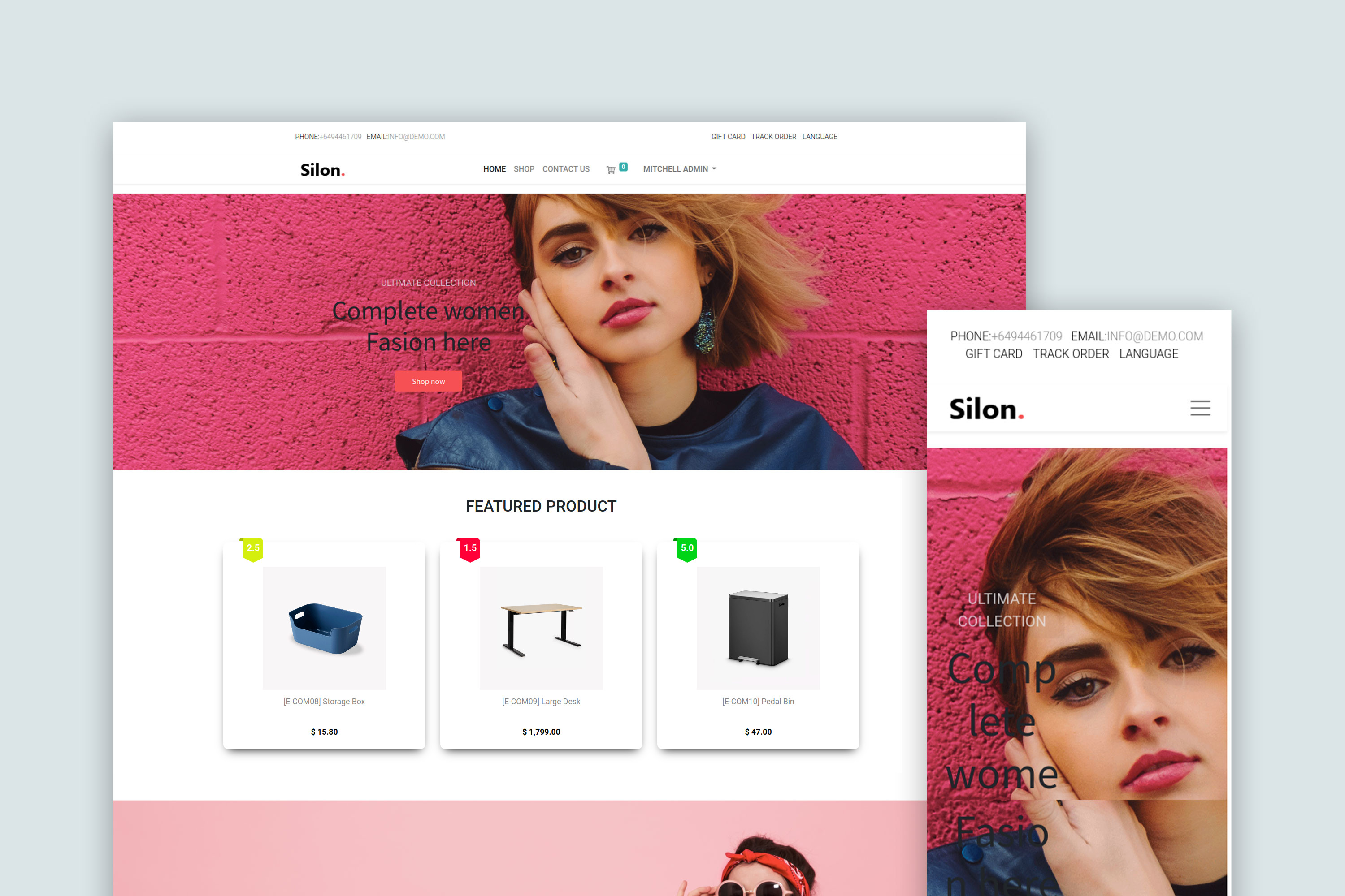 The Silon Theme V17 Gives You an attractive front-end theme suitable for E-commerce. This is an Elegant Backend Theme for Odoo 17. This Theme Will Change Your Old Experience to a New Experience With Odoo. It is a Perfect Choice for Your Odoo Backend and an Attractive Theme for Your Odoo 17. It Contains featured product snippet configured from the backend. The most popular and trending products can be added. The price filter is an attractive feature available. Customized shop, cart, and contact us pages, etc.