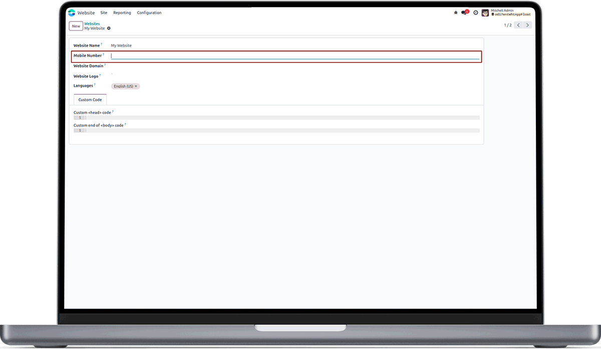 You can assign your mobile number in Website > Configuration > Websites.