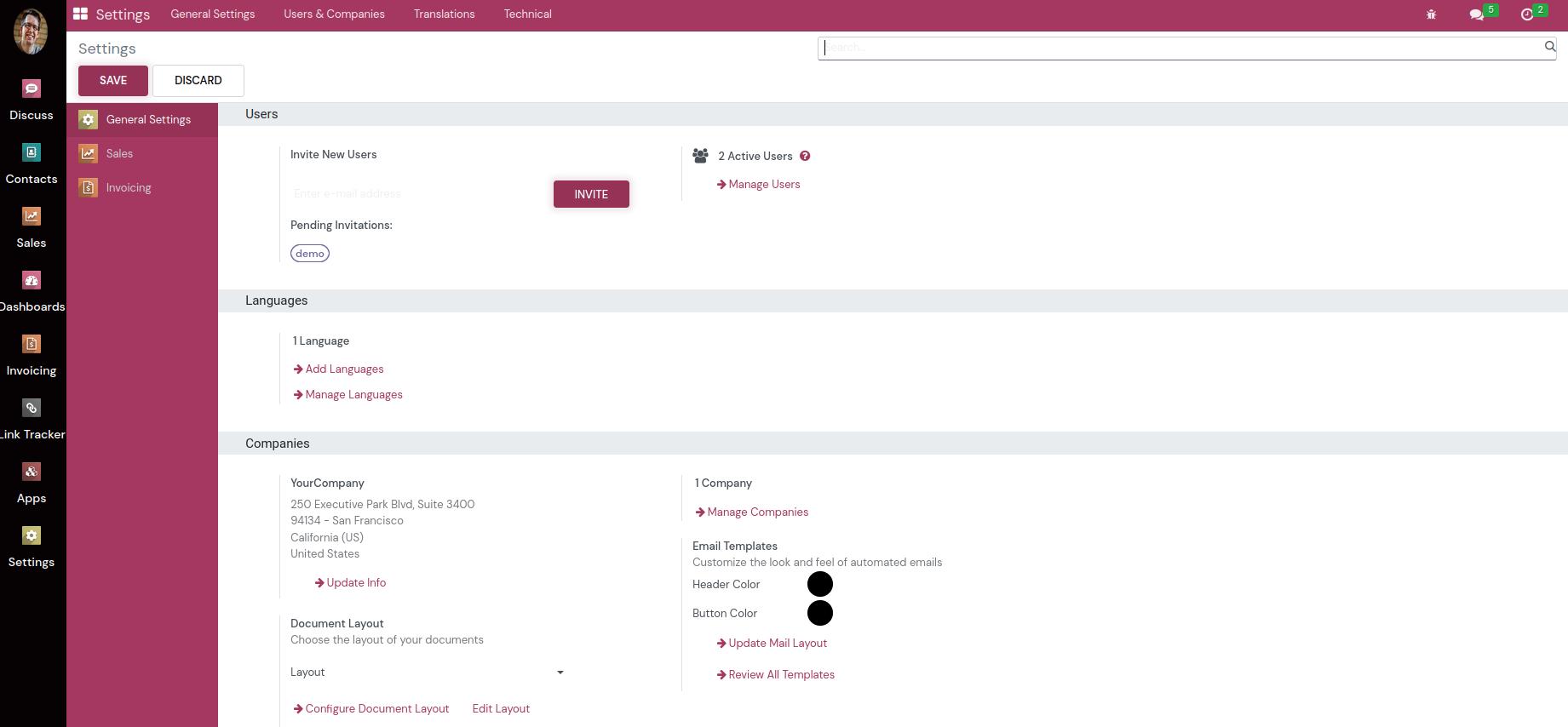 To improve your experience with Odoo the Hue backend theme provides a fully configurable theme settings menu.
