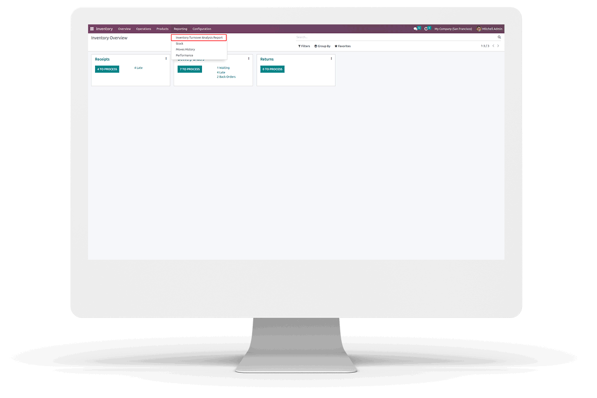 This will help you to generate inventory turnover analysis report in pdf, xlsx, tree view and graph view.