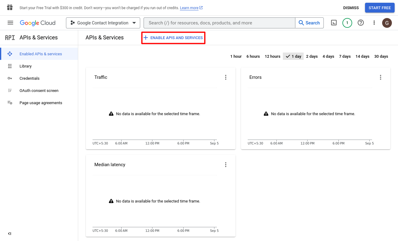 Click Enable APIs and Services.