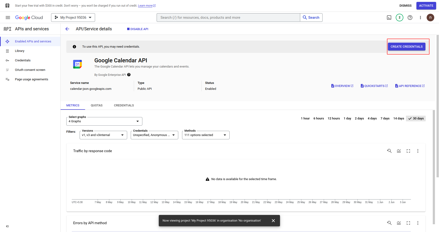 Search for "Google Calendar API", Open and click "Enable" to use.