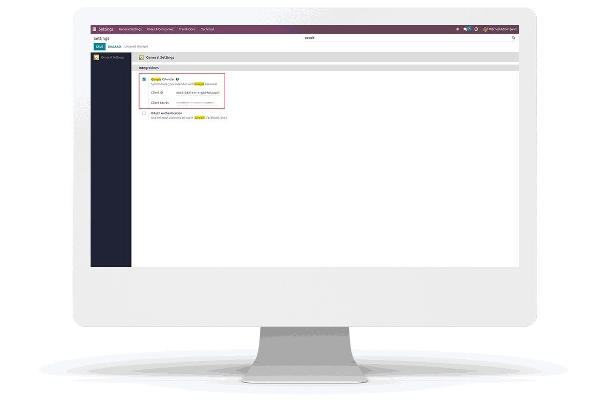 Under Settings > integration > google calender, add client id and client secret then save .