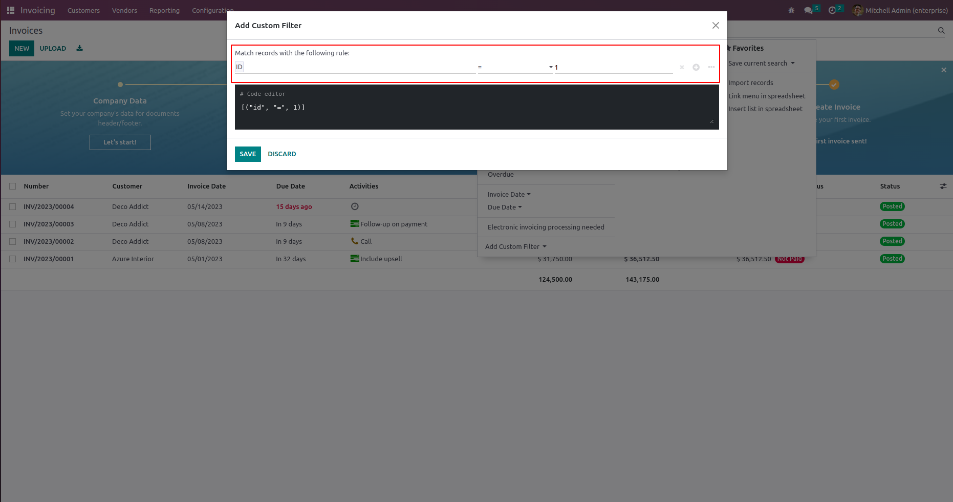 By selecting "Add Custom Filter", you can get an enhanced view with branch and node criteria. The ' + ' button allows you to add numerous nodes.