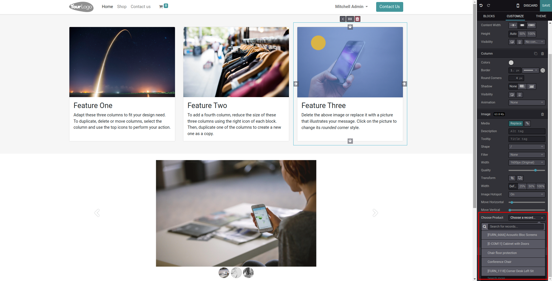 Select the desired product to be redirected when the user clicks on the image hotspot
