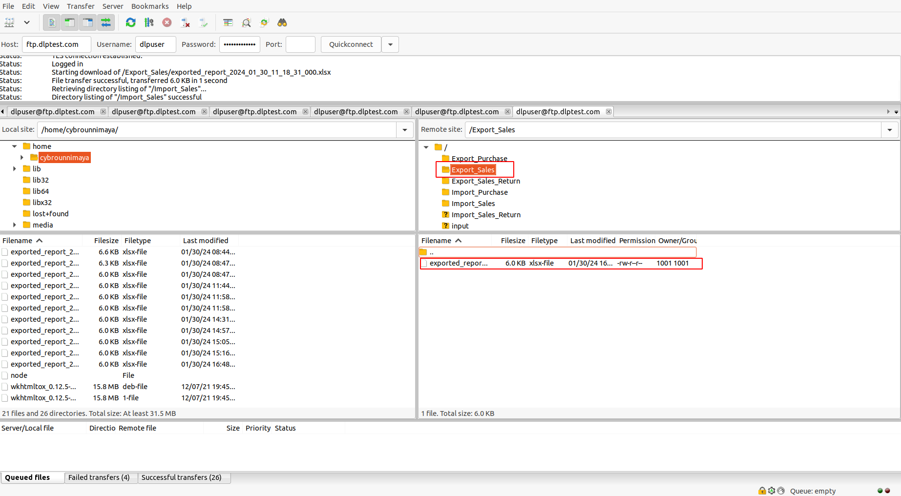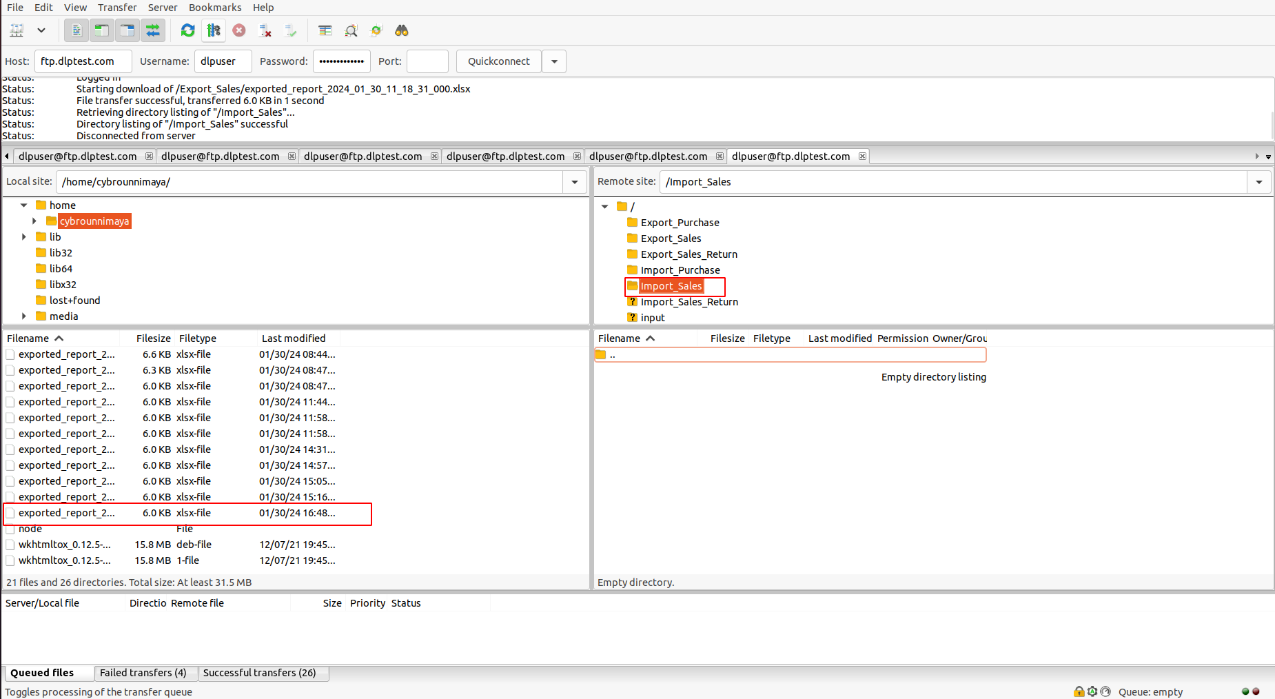 The specifics of the delivered product can be transferred to the Import Folders. In this instance, I transferred the Excel file from my local system to the Import_Sales folder by right-clicking on the file on the left side and selecting the Upload button.