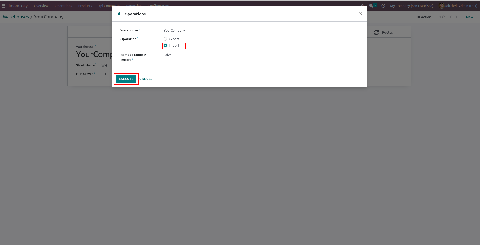 Select the Warehouse. Choose the operation as Export and Choose the Items to Export/ Import. Then click EXECUTE.