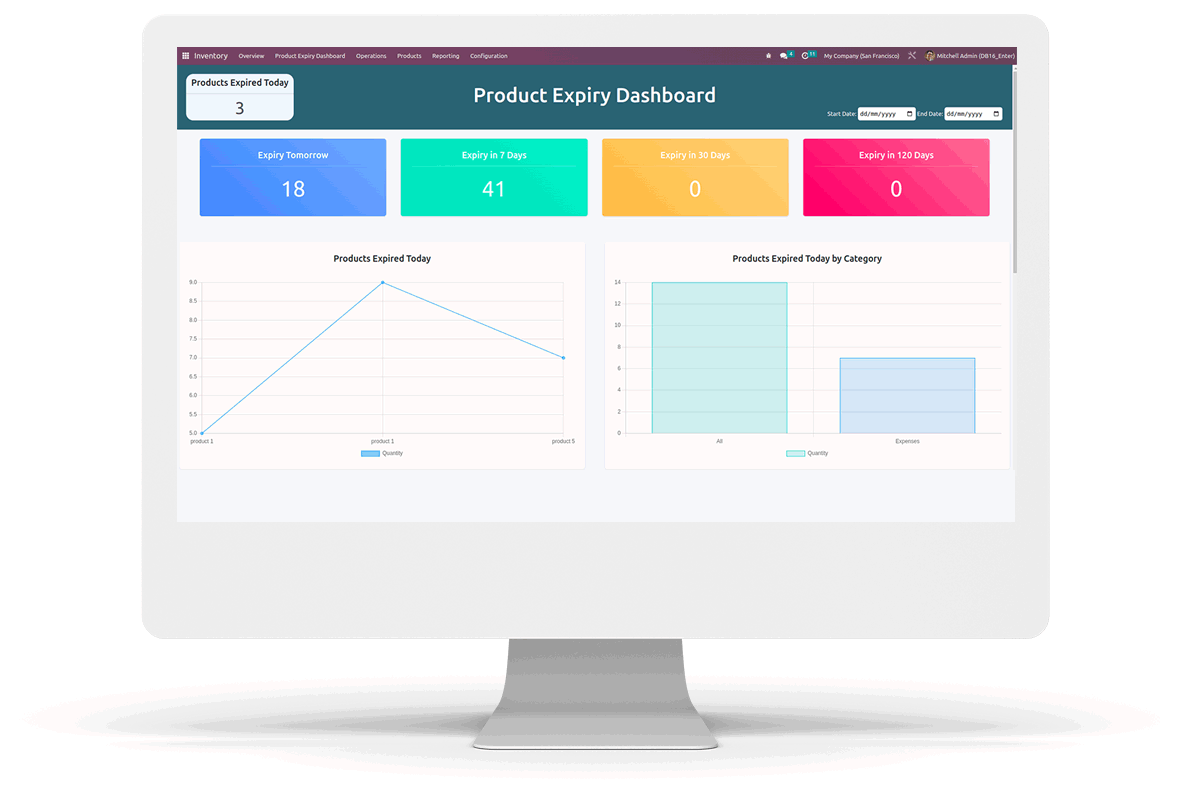 Navigate to Inventory --> Product Expiry Dashboard menu.