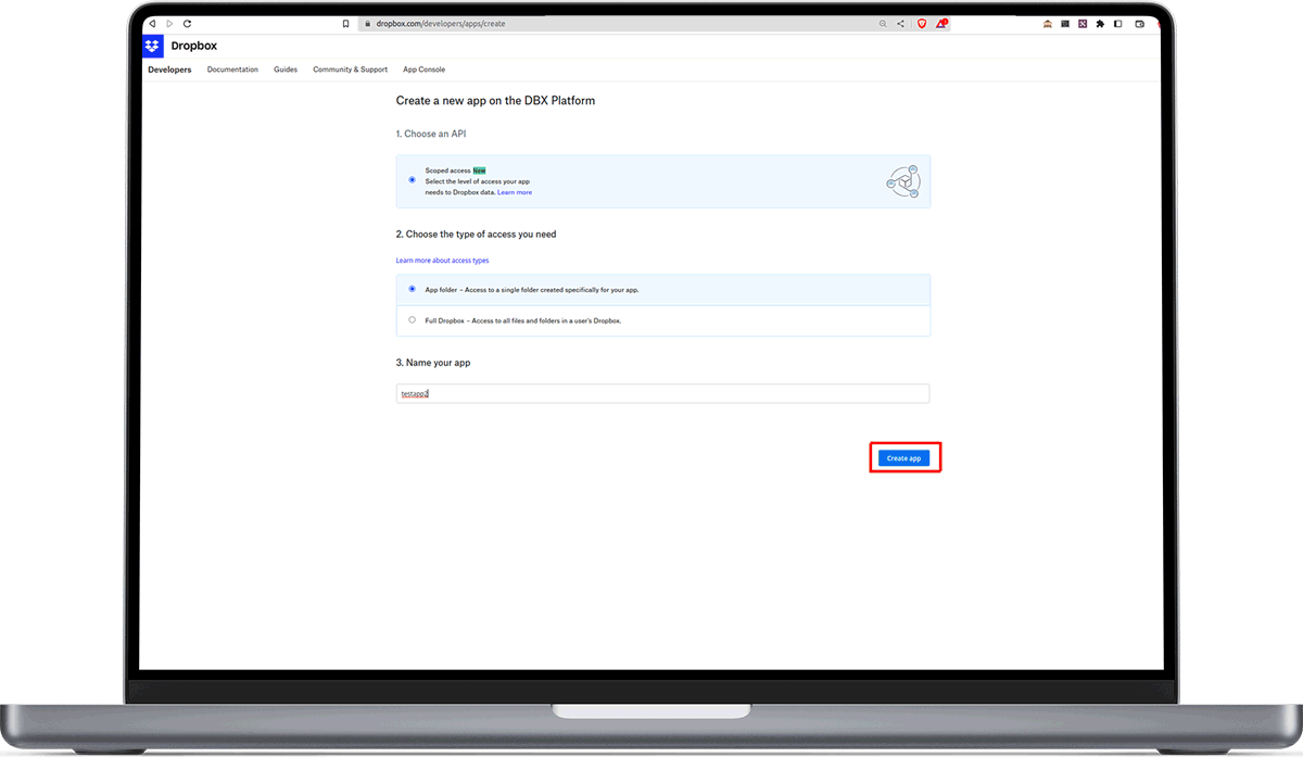 Fill up the credentials and set up the dropbox connection with auth code in the Integrations part of Settings